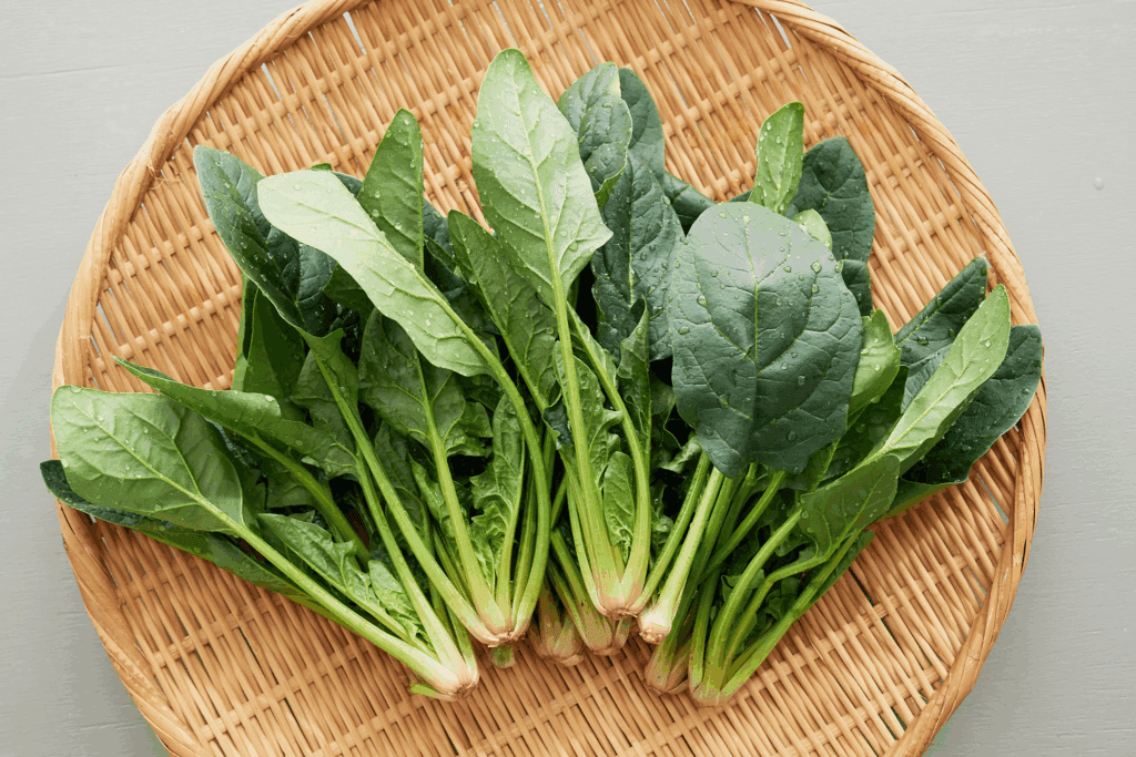 시금치는 비타민 A, C, K와 철분이 풍부하게 포함되어 있어 면역력을 높이고 피로 회복에 도움을 줍니다. 특히 시금치에 포함된 철분은 피와 산소 공급을 원활하게 해, 기력을 향상시켜 줍니다. 따뜻한 물에 데쳐 먹거나 참기름과 간장으로 양념한 시금치 나물은 간편하게 준비할 수 있고 맛도 좋아 많은 사람에게 사랑받는 반찬입니다.