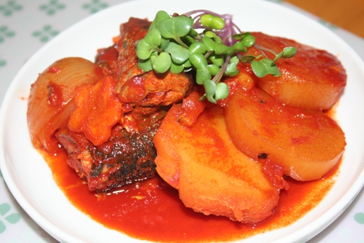 조림에 사용되는 생선만큼 뿌리채소도 또한 중요한 역할을 합니다. 무나 생강, 대파 같은 뿌리채소는 조림의 육수를 더 풍부하게 만들어 줍니다. 특히 무는 생선 조림의 여독을 줄여주고, 생선의 비린내를 효과적으로 제거해 주어 맛을 더욱 깊어지게 합니다.