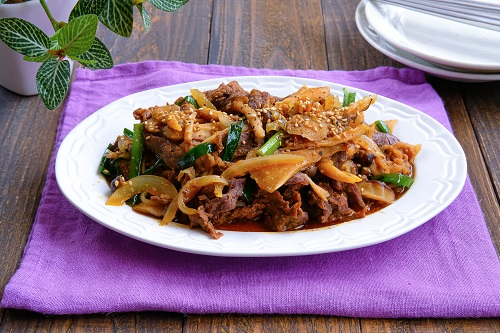 불고기는 한국의 대표적인 구이 음식 중 하나로, 매운 양념에 재운 고기를 구워 더욱 맛있게 즐길 수 있습니다. 달콤하면서도 매운 맛이 어우러져 고기의 풍미를 한층 끌어올립니다. 야채와 함께 조리를 하면 더 건강하고 맛있게 즐길 수 있습니다.